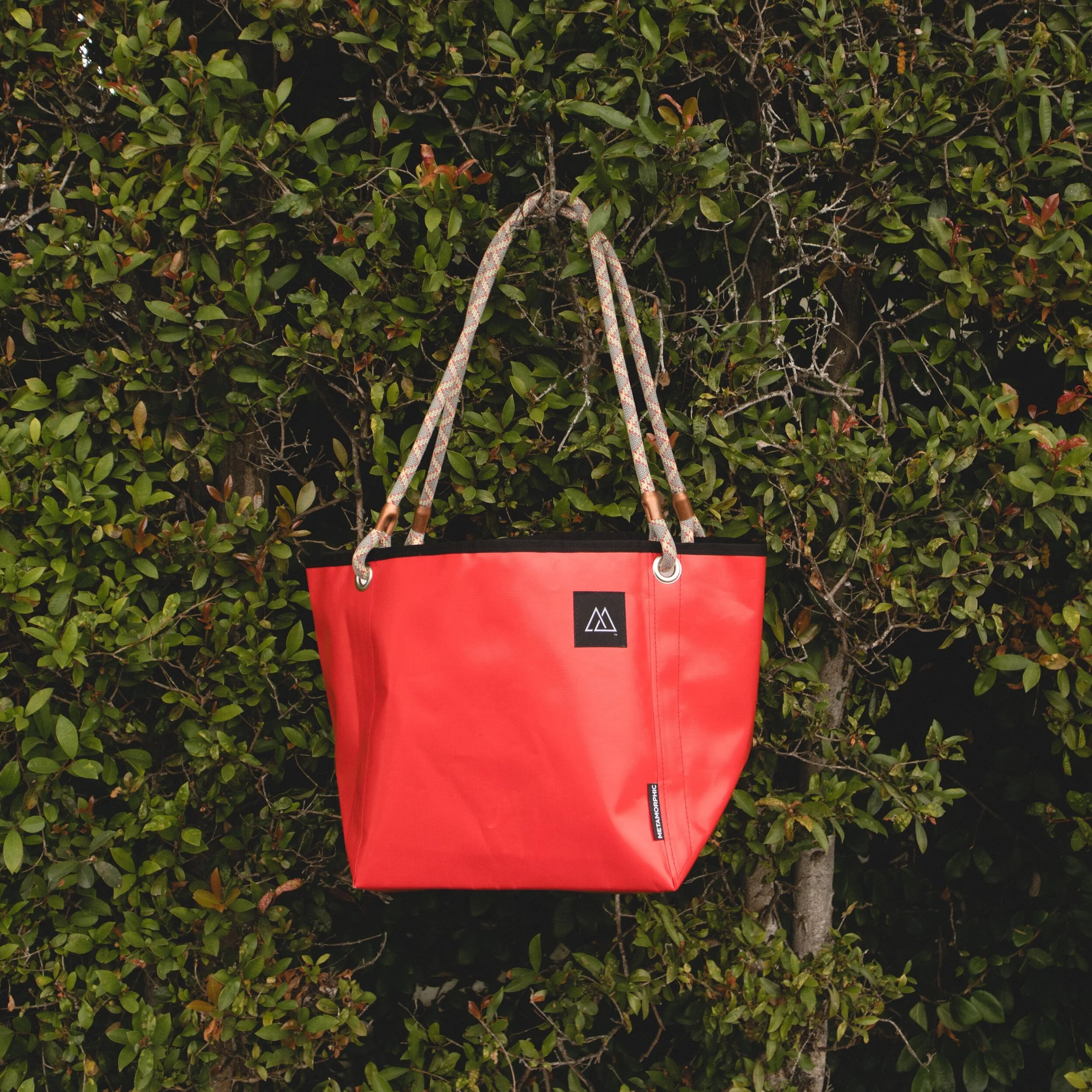 Our best selling Zippered Tote bag features a zip-top closure, two zippered interior pockets, fully lined sail cloth inside and a rugged tarp exterior. If this tote could talk it would tell of great adventures from coast to coast. The next chapter is yours.